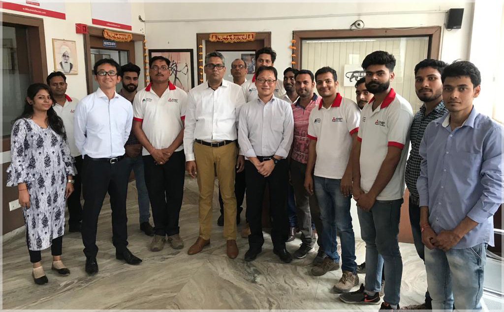 Visit by Nishimoto San, Director Mitsubishi Electric FAID, Kuwae San, AGM – Strategic Planning Mitsubishi Electric FAID and Nipun Gupta, Regional Head North Mitsubishi Electric FAID to Alliance Automation Office. Agenda included meeting the team and visit to robot service area.